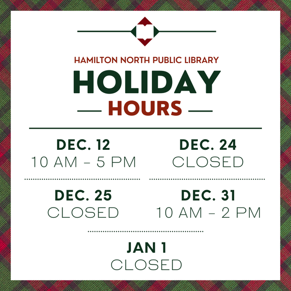 Season's greetings patrons! With the holiday season in full-swing, we thought we would tell you all about the exciting events and programs happening at HNPL. Learn more about these upcoming events, programs, and opportunities by exploring each one below. We hope to see you in the library soon!